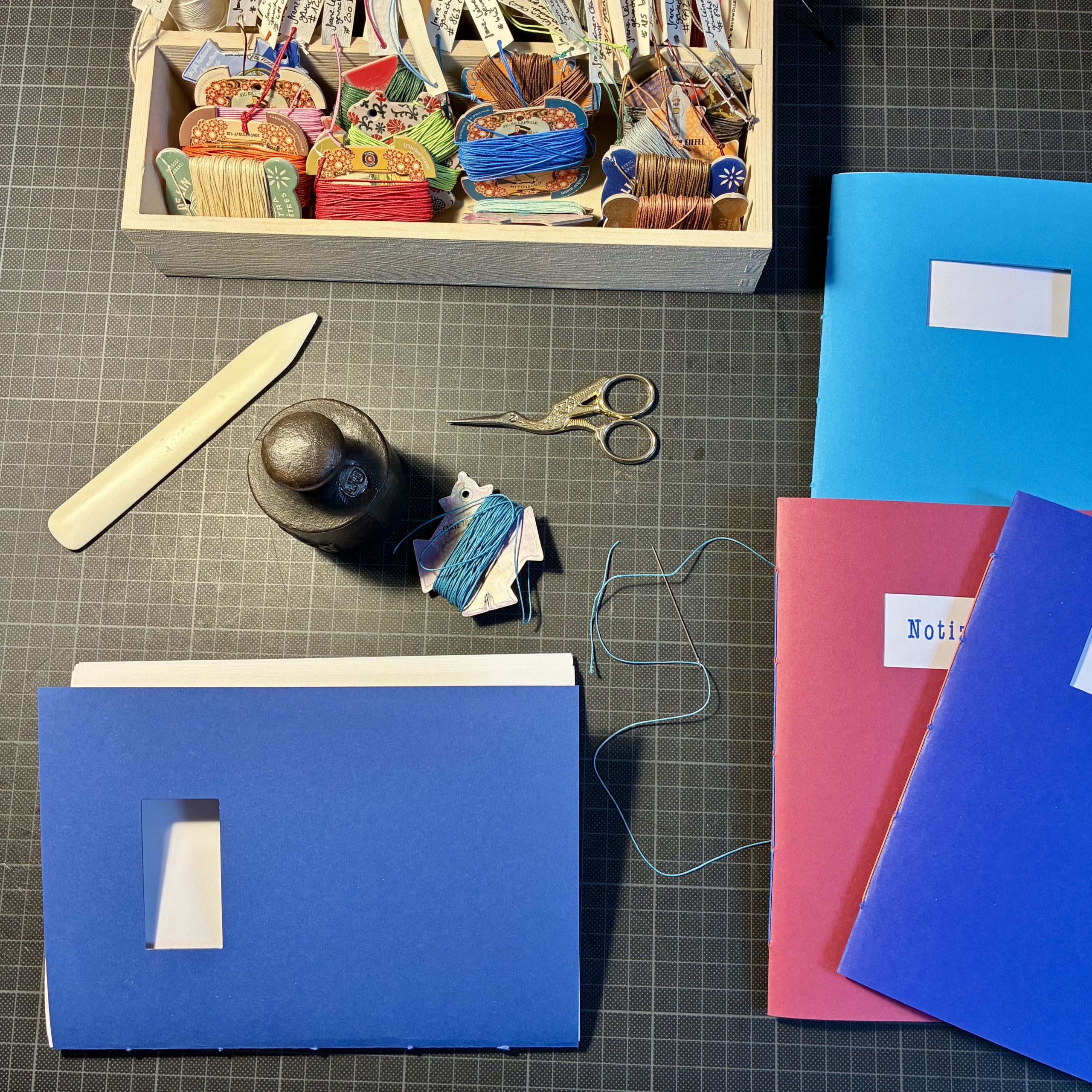 blanko, handgebunden in Buchleinen, Papier und pflanzlich gegerbtes Leder