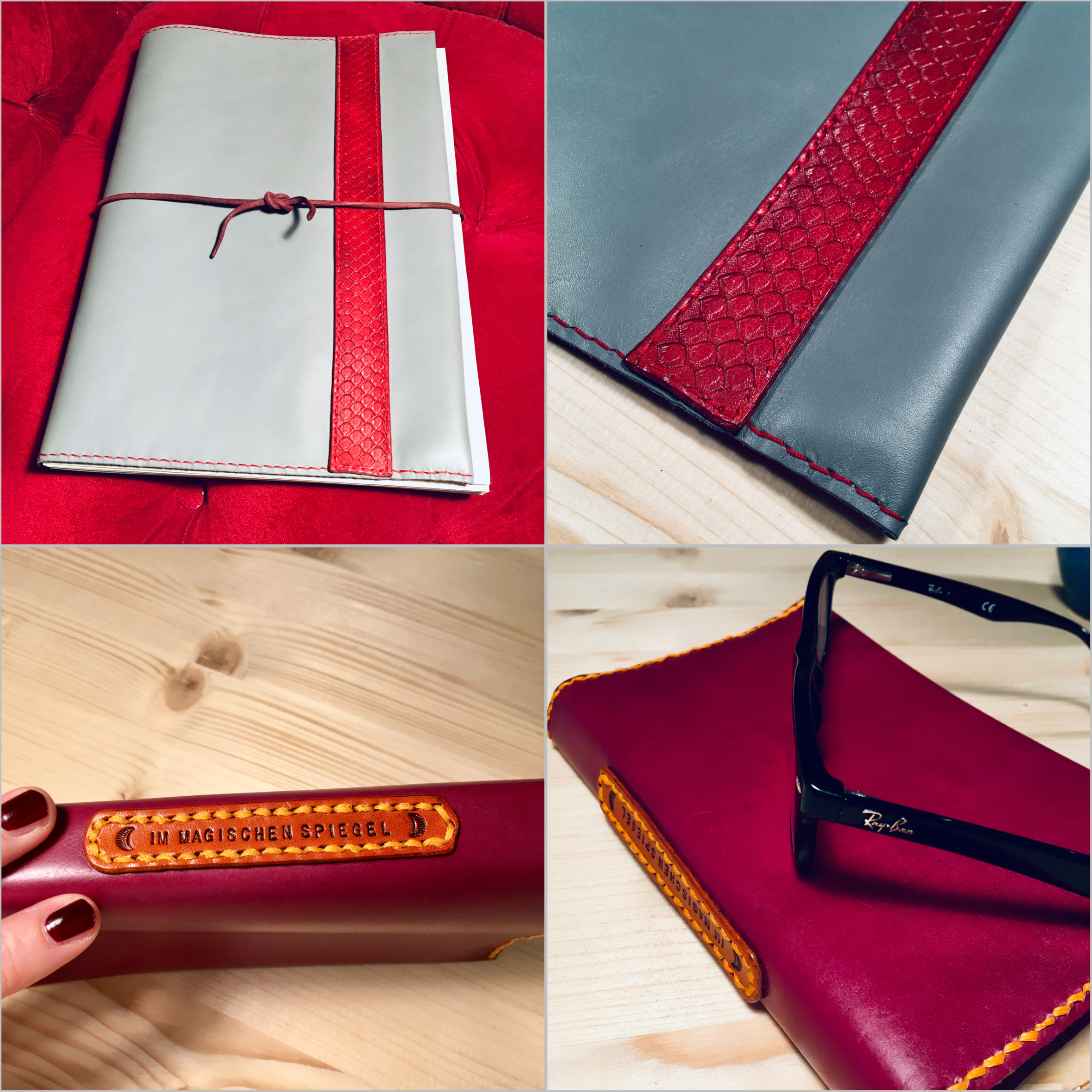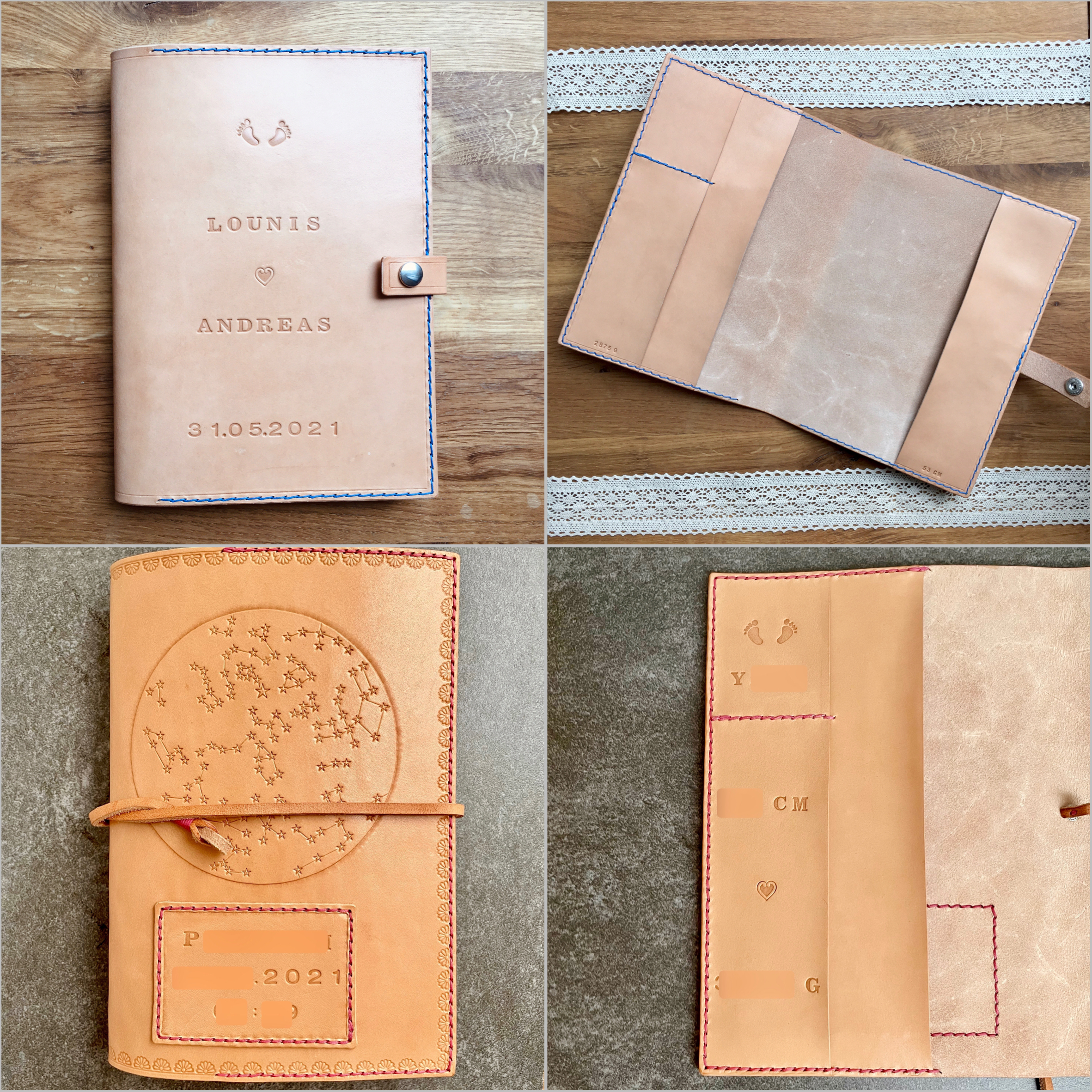 Kalender/Timer (auswechselbare Kalendereinlagen) • Ringbuchmappen • Sternenmappe für’s Baby • Mappe für Mutterpass • Kladden für Notizen • Gedenkmappe • Buchhüllen • Hüllen für’s Tablet • vegetabil gegerbtes Rindleder • traditionell handgenäht (Sattlernaht)