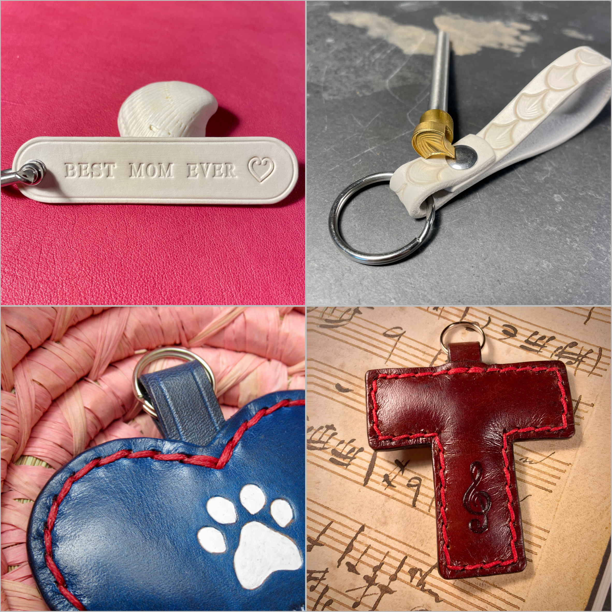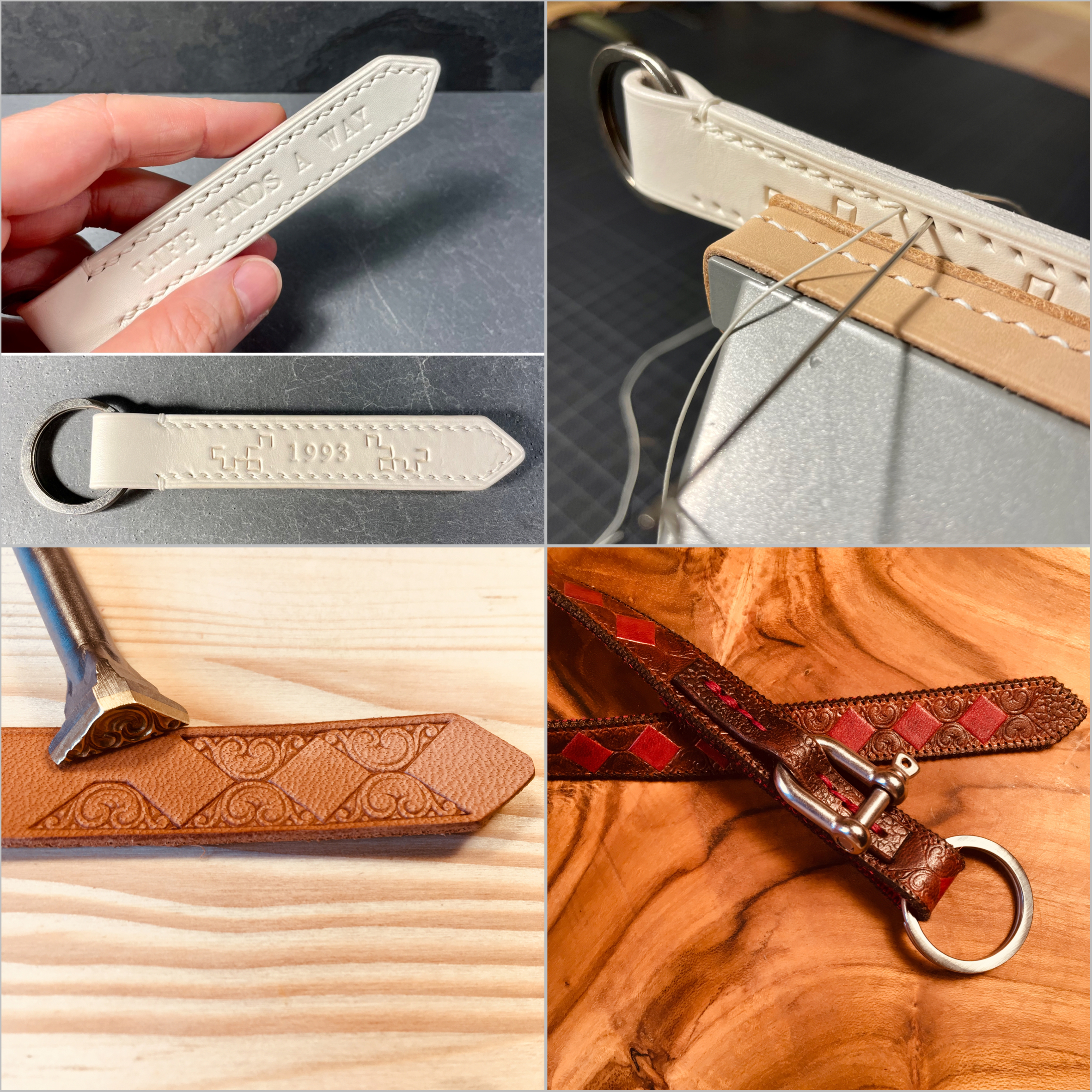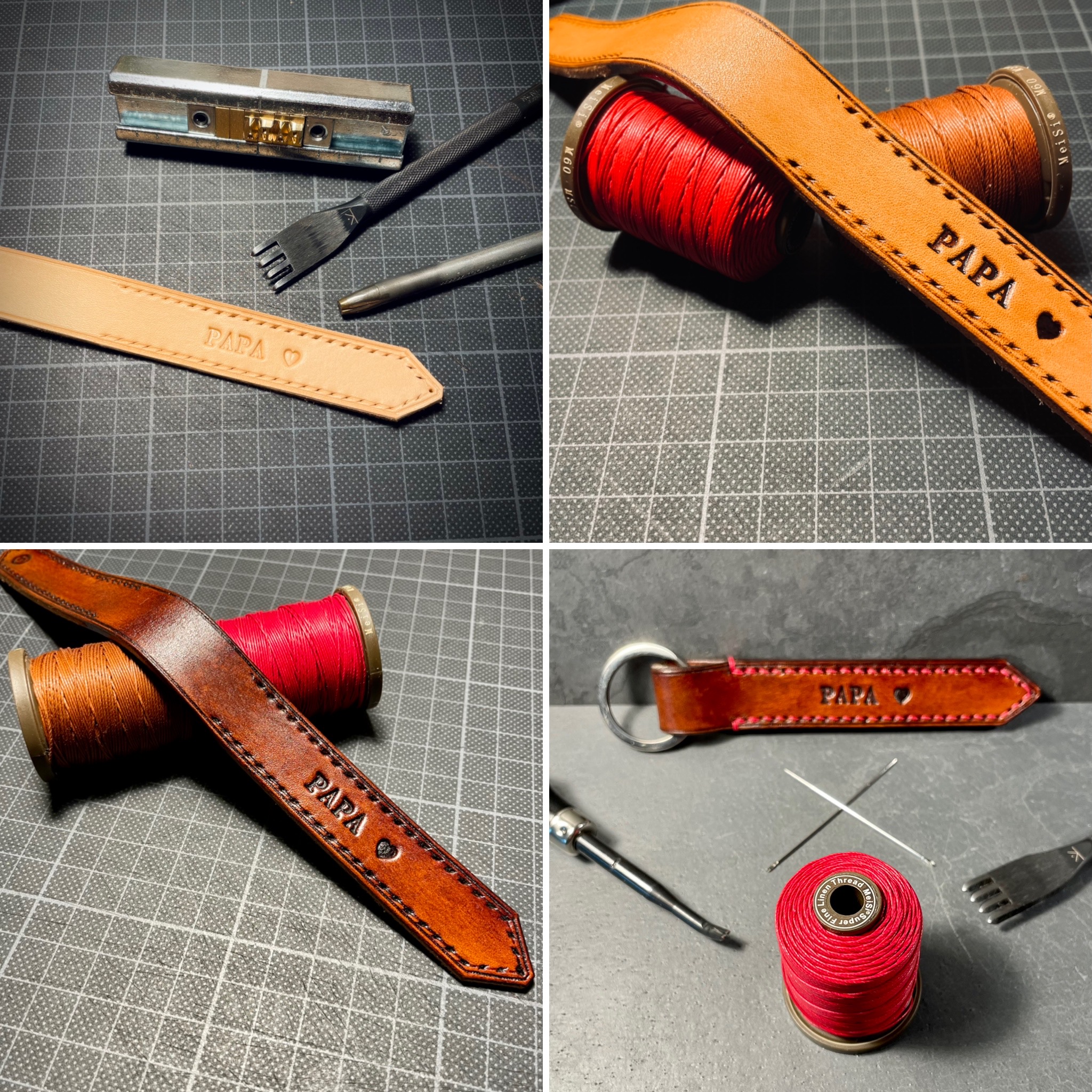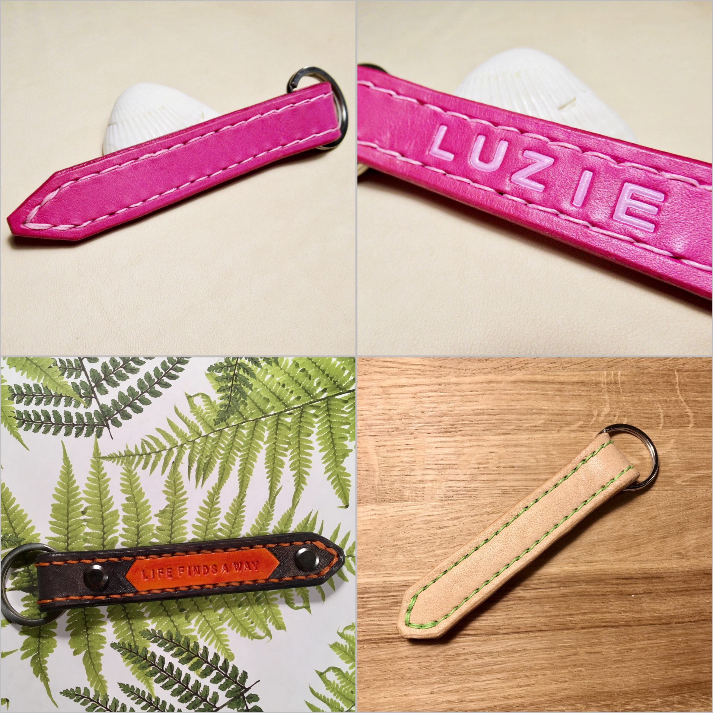 personalisierte Motive • vegetabil gegerbtes Rindleder •handgeflochten (8-strängig) aus Büffelleder • Beschläge aus Edelstahl, Messing oder 925 Silber • handgefärbt und handgenäht mit Leinengarn