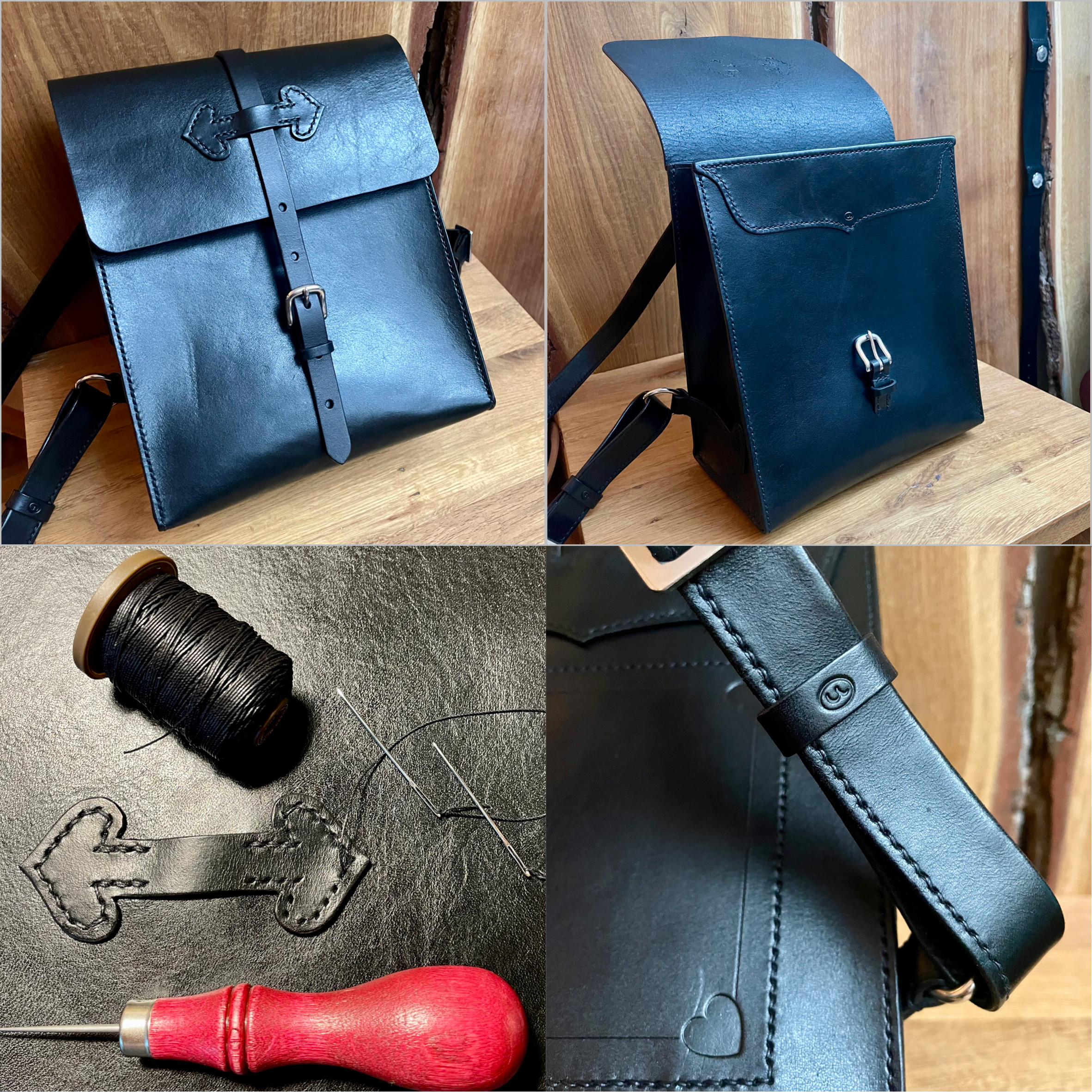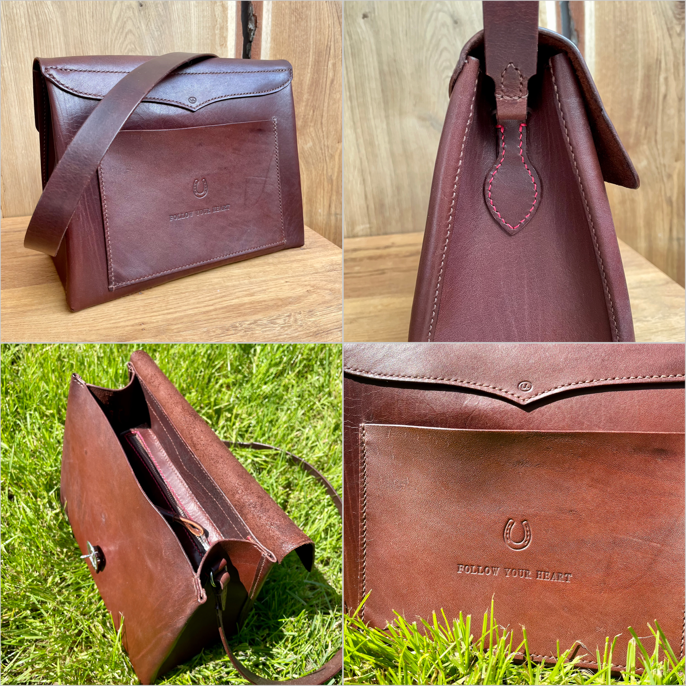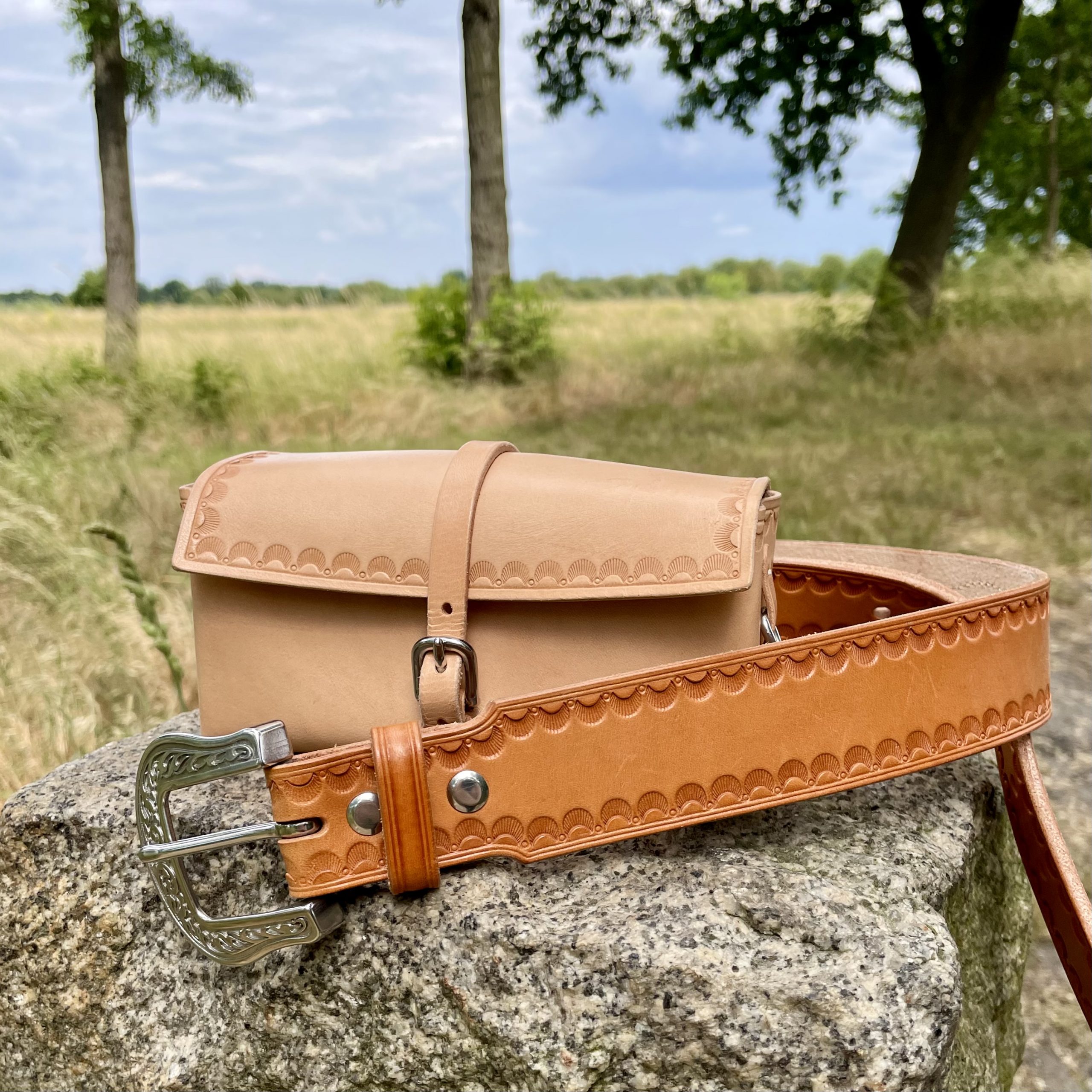 pflanzlich gegerbtes Rindleder • handgenäht mit traditioneller Sattlernaht und Leinengarn • Beschläge aus Edelstahl oder Messing