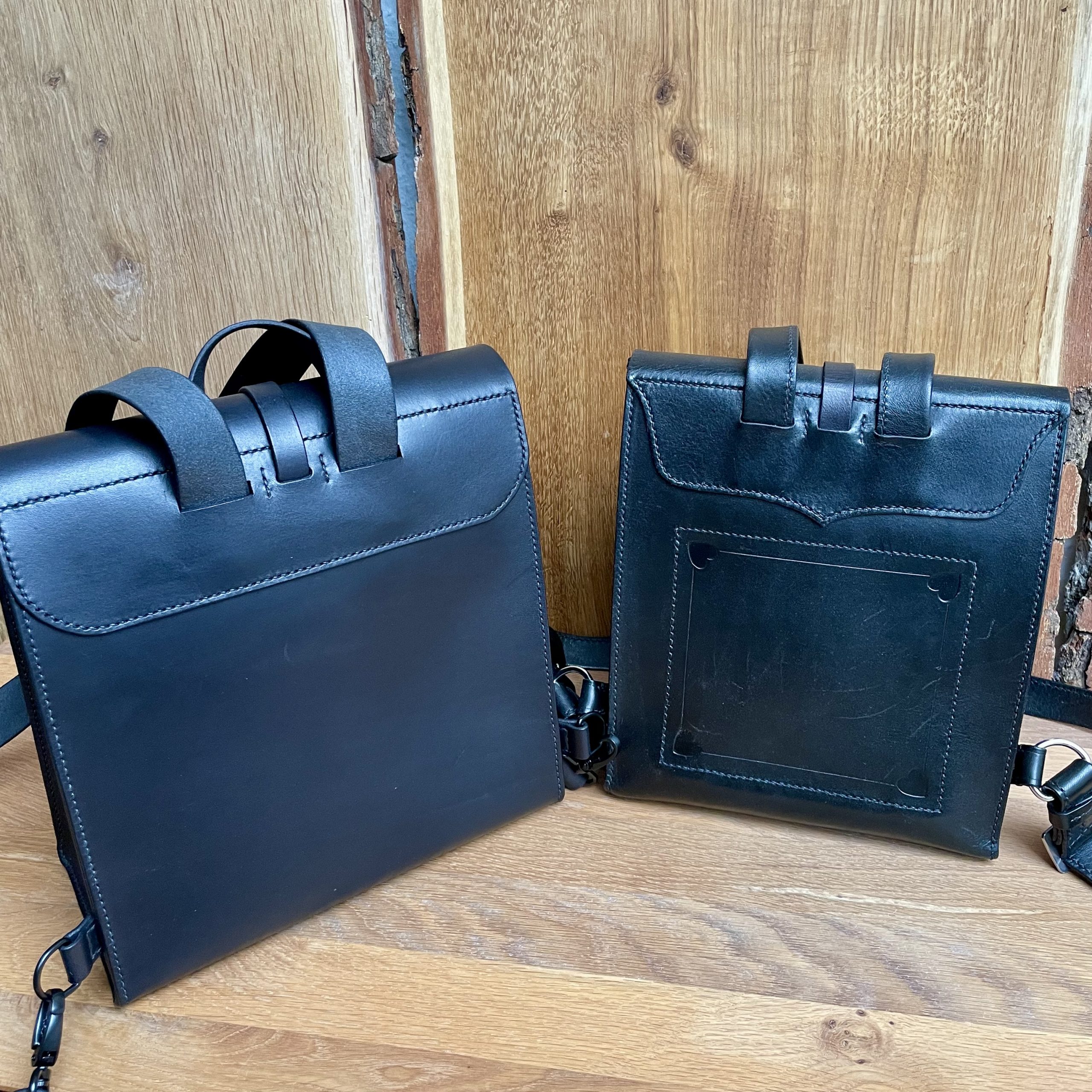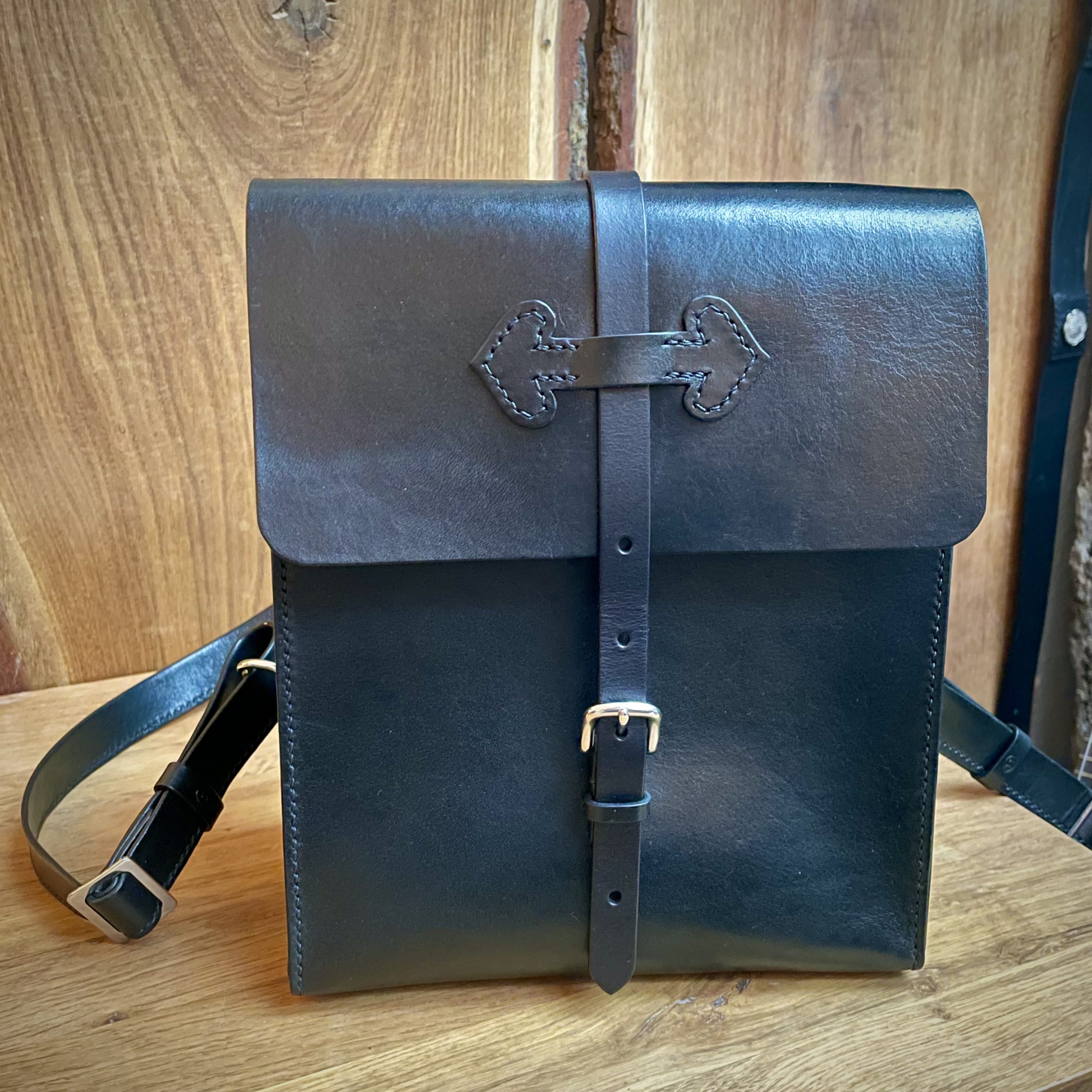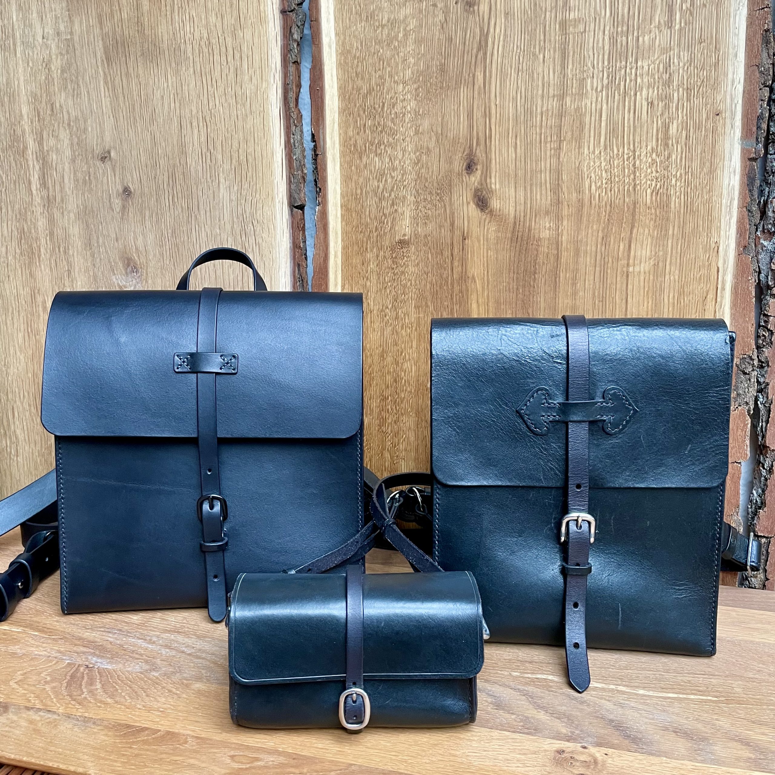 pflanzlich gegerbtes Rindleder • handgenäht mit traditioneller Sattlernaht und Leinengarn • Beschläge aus Edelstahl oder Messing