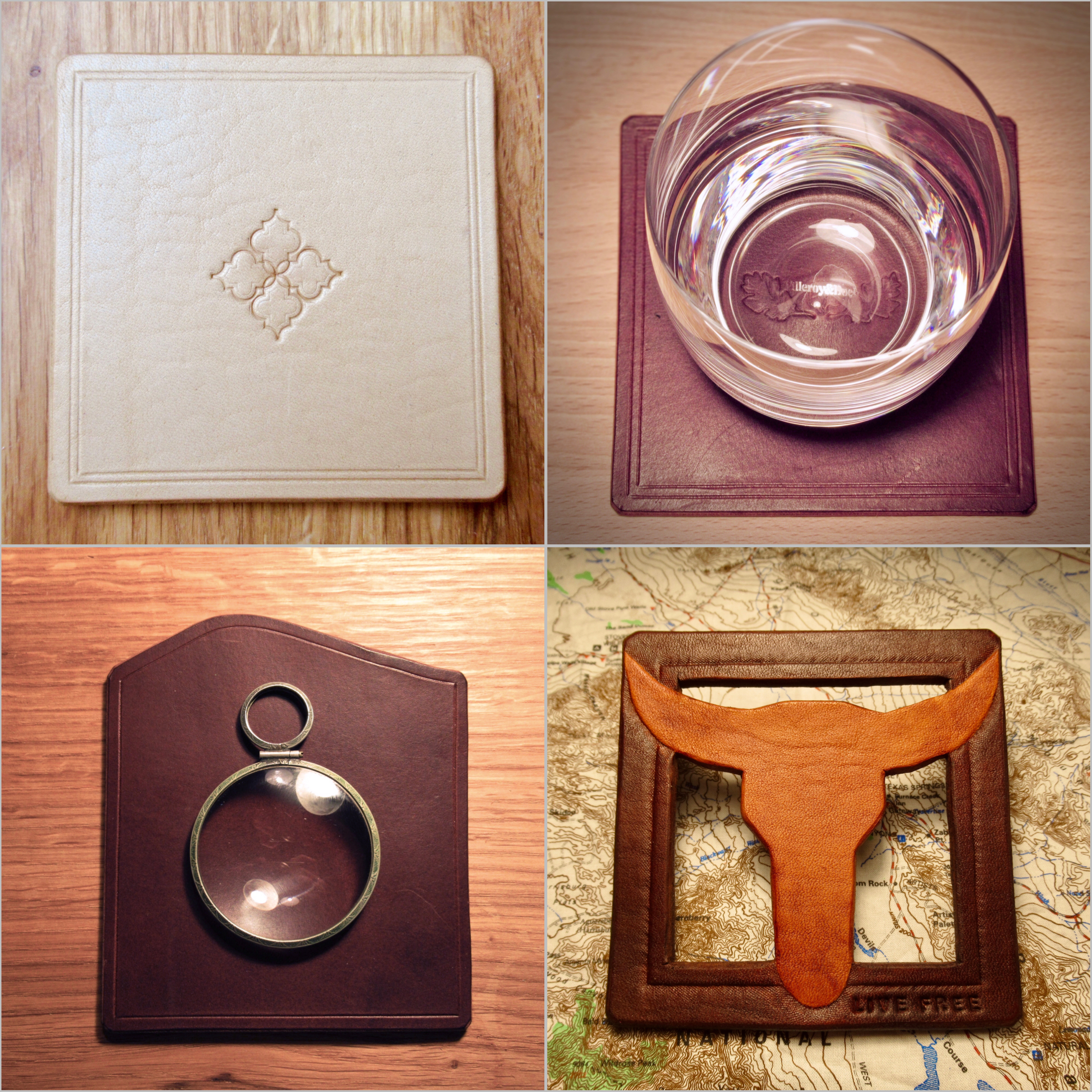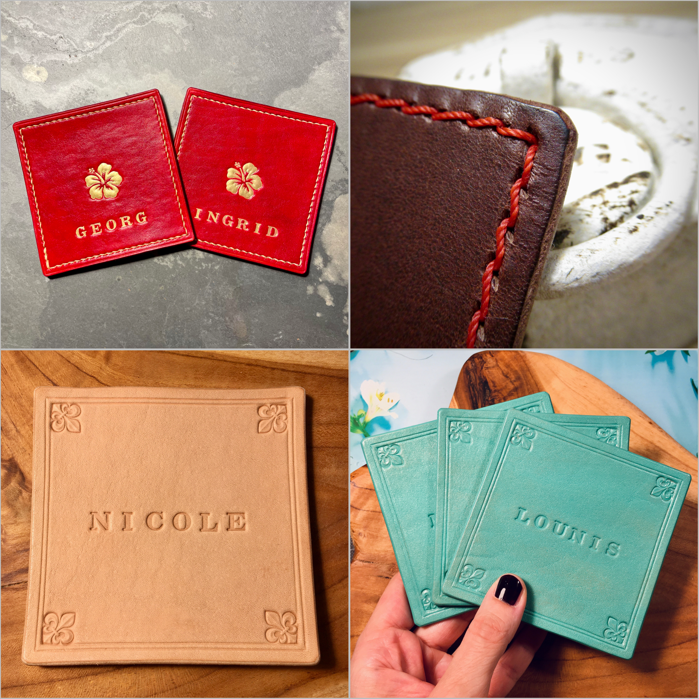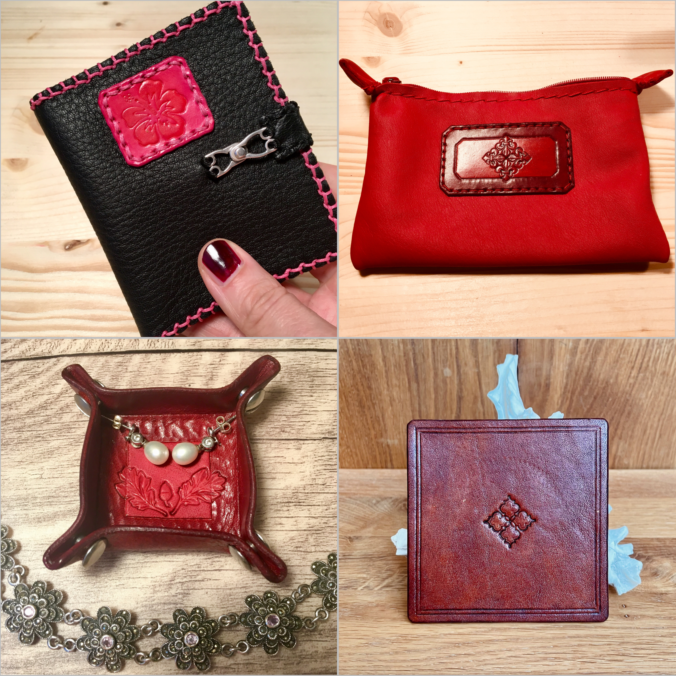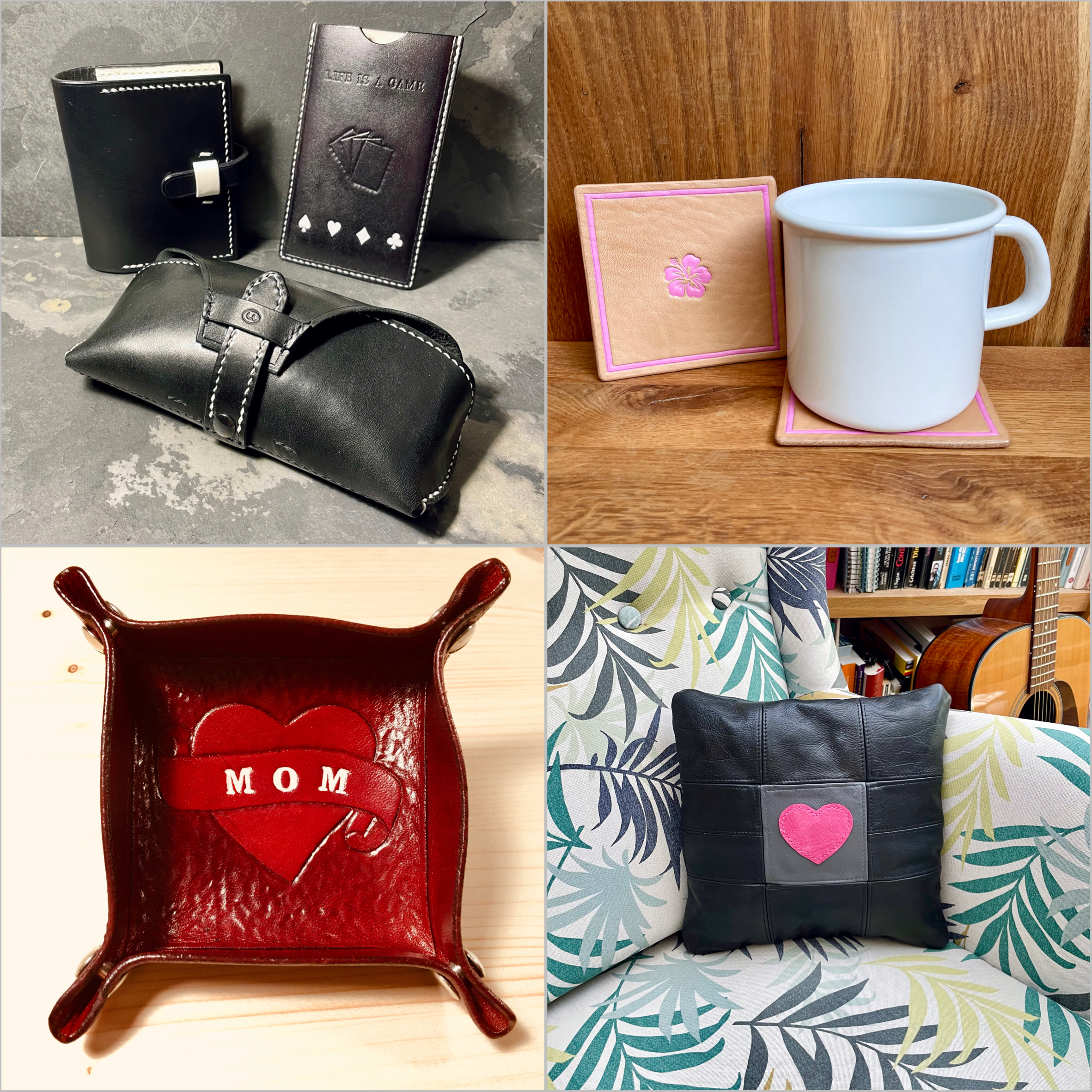 Nützliches für den Alltag • Brillenetuis • Adieu Kabelsalat • personalisiertes Mauspad • Ordnung für Schminkutensilien • Lederkissen • Messerscheiden • Untersetzer • Schminktaschen • Kameragurt • Schürzen • vegetabil gegerbtes Rindleder und -nappa • individuelle Motive • handbemalt