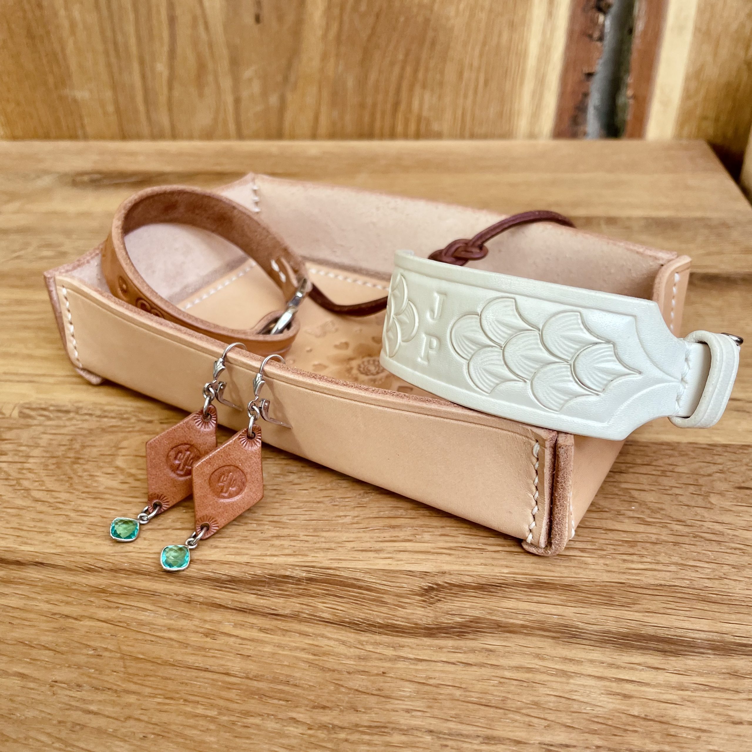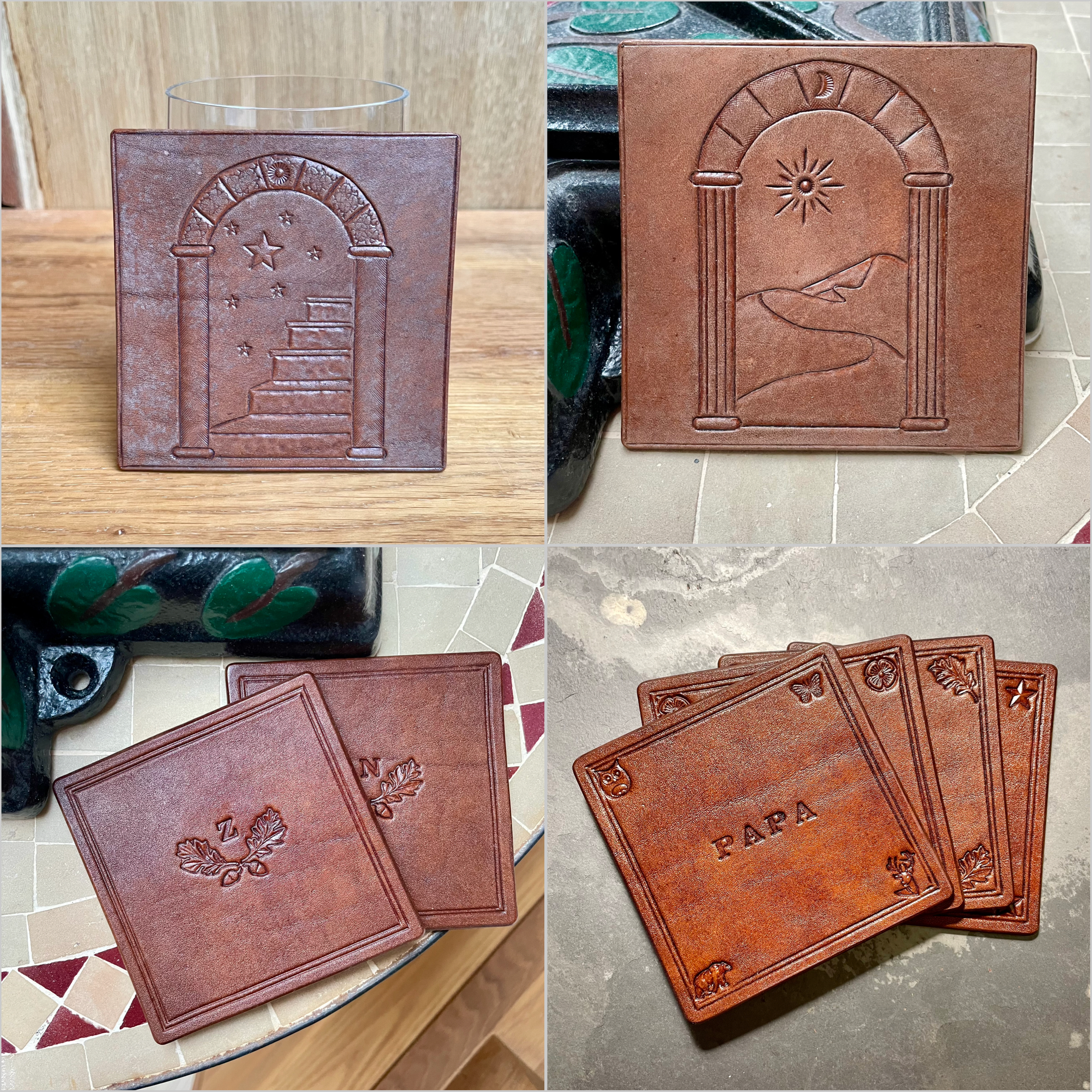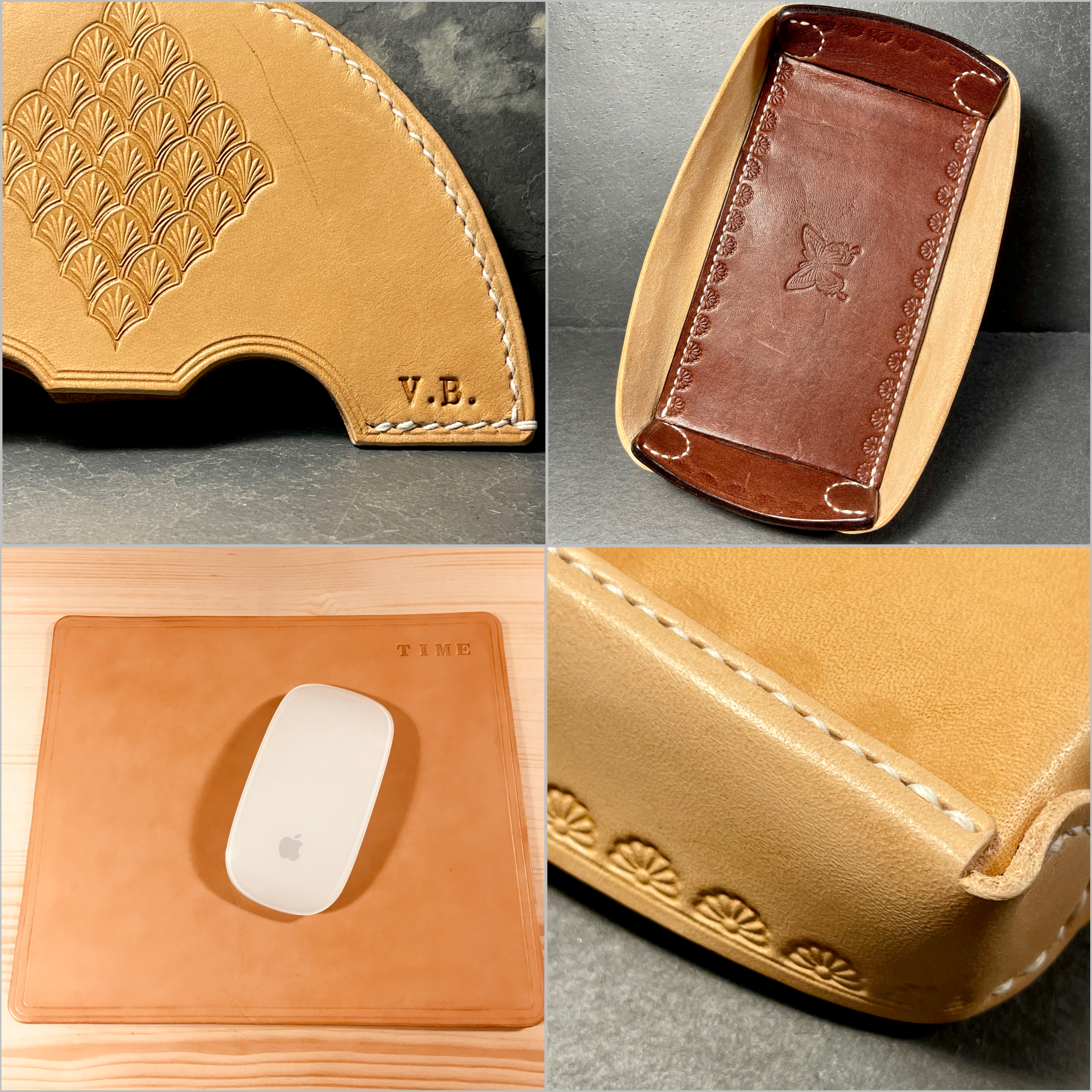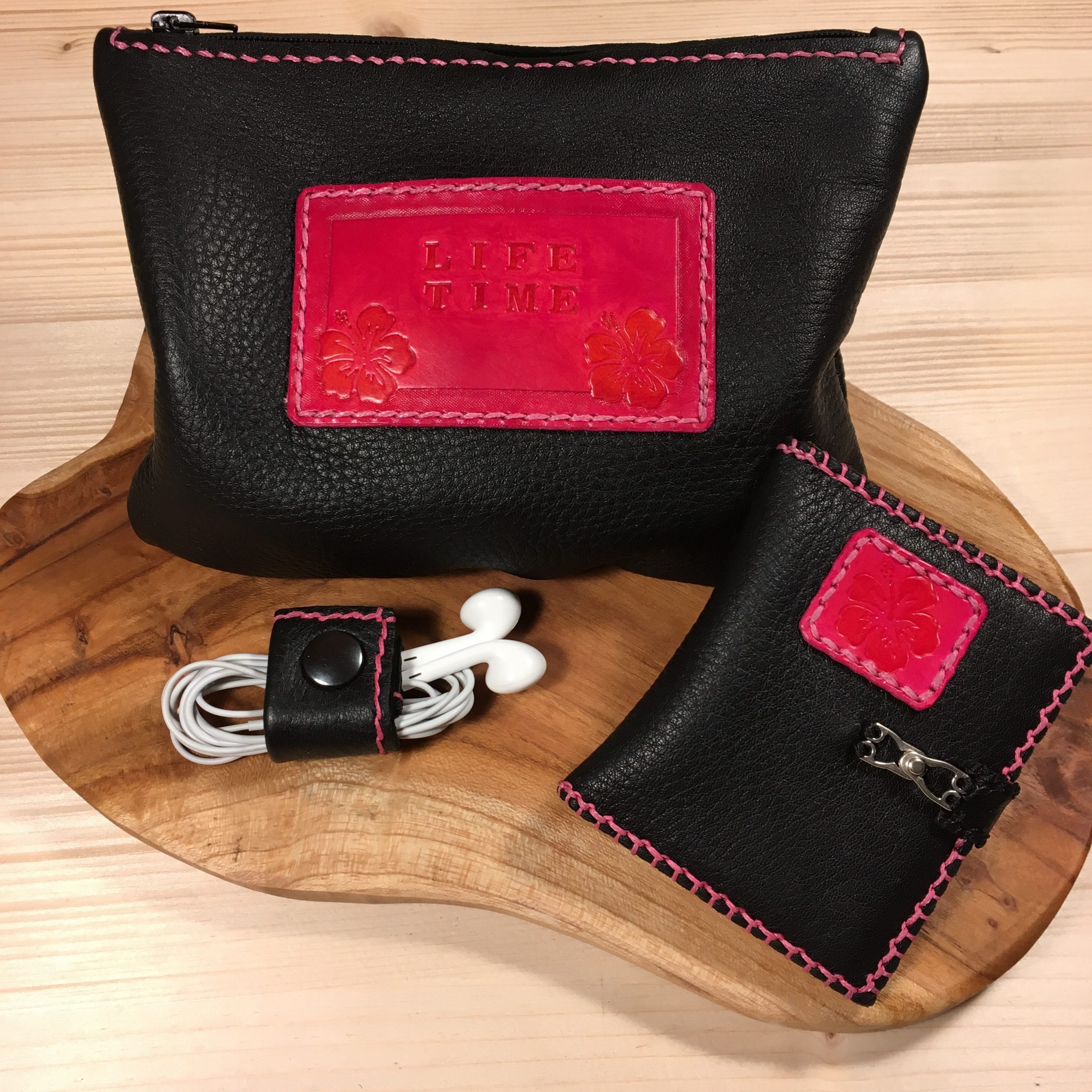 Nützliches für den Alltag • Brillenetuis • Adieu Kabelsalat • personalisiertes Mauspad • Ordnung für Schminkutensilien • Lederkissen • Messerscheiden • Untersetzer • Schminktaschen • Kameragurt • Schürzen • vegetabil gegerbtes Rindleder und -nappa • individuelle Motive • handbemalt