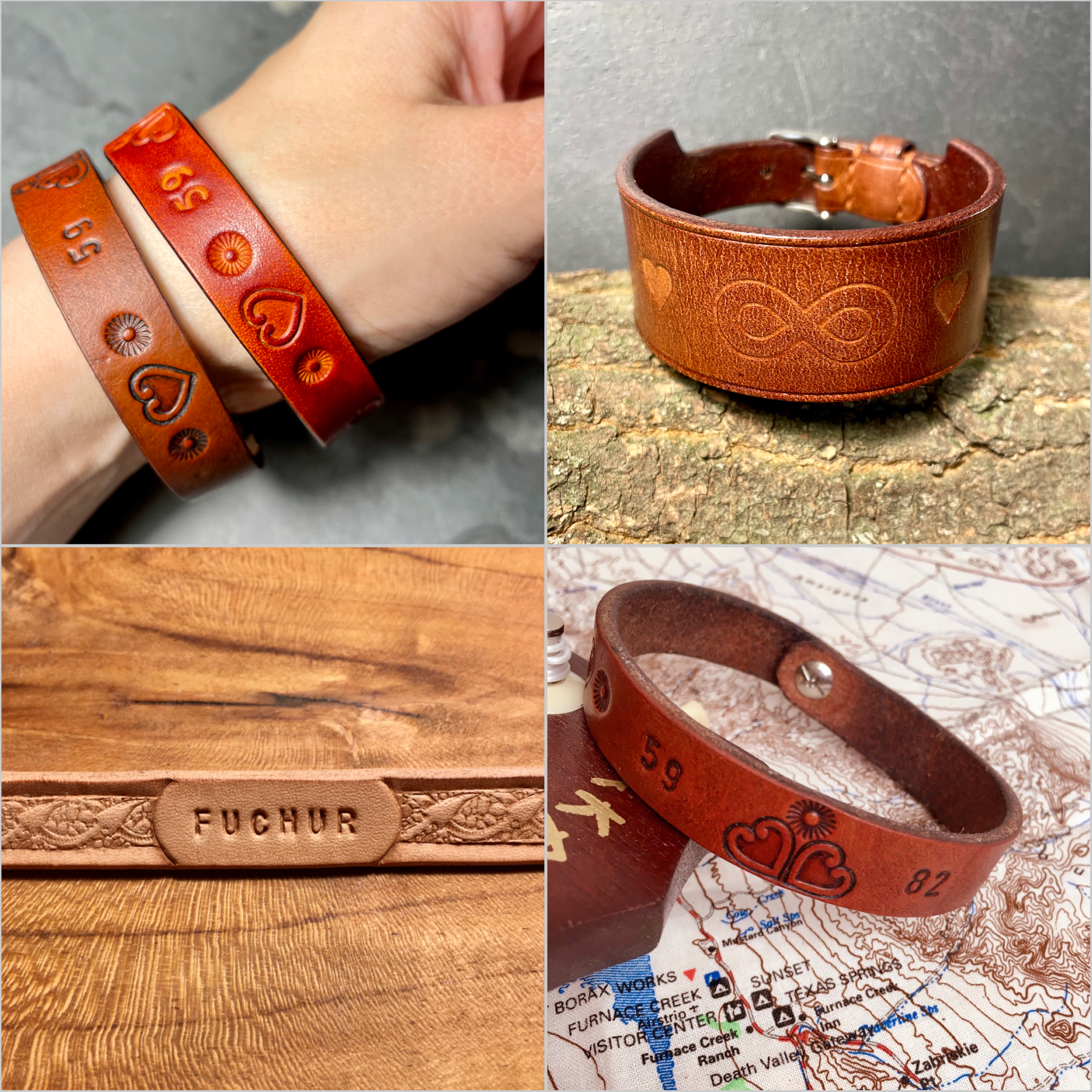 handgenäht • vegetabil gegerbtes Rindleder • Personalisierung und individuelle Motive • Uhrenarmbänder • handgefärbt • handbemalt • Verschlüsse aus Edelstahl oder Messing • Armbandreparaturen