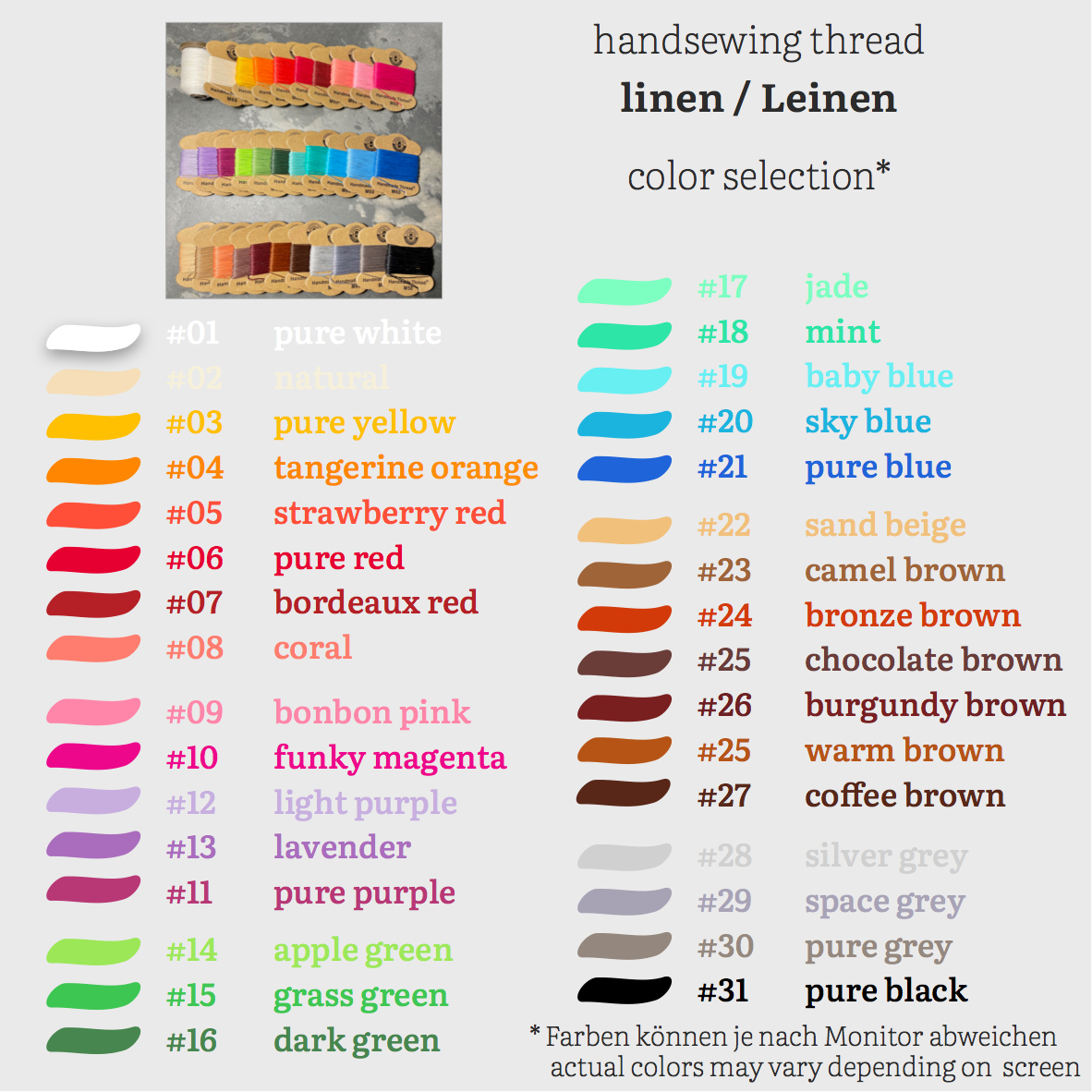 Hochwertiges Leinengarn für die Handnaht. Leicht gewachst, runder Durchmesser und für zusätzliche Reißfestigkeit dreifach gezwirnt. Mein Standardgarn.