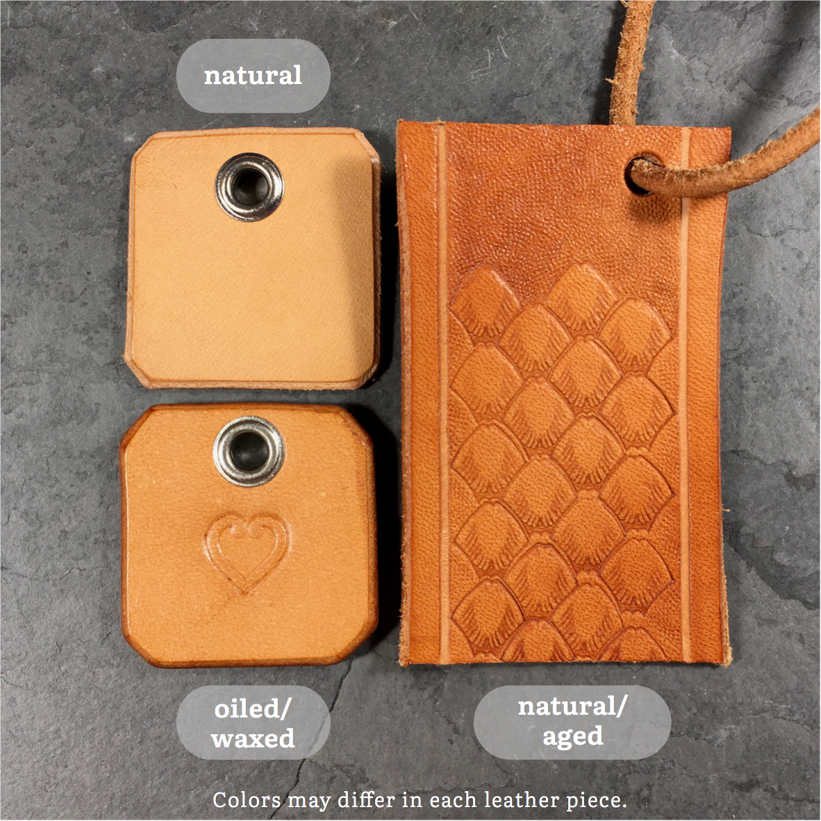 Ungefärbtes, naturelles Leder kann durch Wachsen und Ölen eine leichte Nachdunkelung und einen lebendigen, hellbraunen Farbton erhalten. Durch das „Einbrennen“ von reinem Bienenwachs kann ein Karamellton erzielt werden.