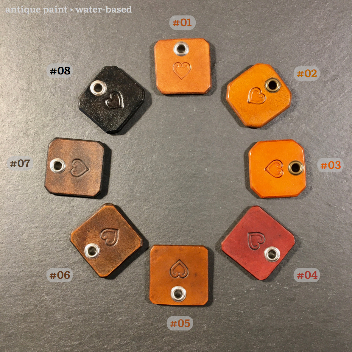 Die mit „LIGHT“ gekennzeichneten Farben erreichen keine vollständige Deckung, sodass das dunklere Leder durchscheint. Je nach Ausgangsfarbe des Leders kann insbesondere eine LIGHT-Färbung unterschiedlich ausfallen.