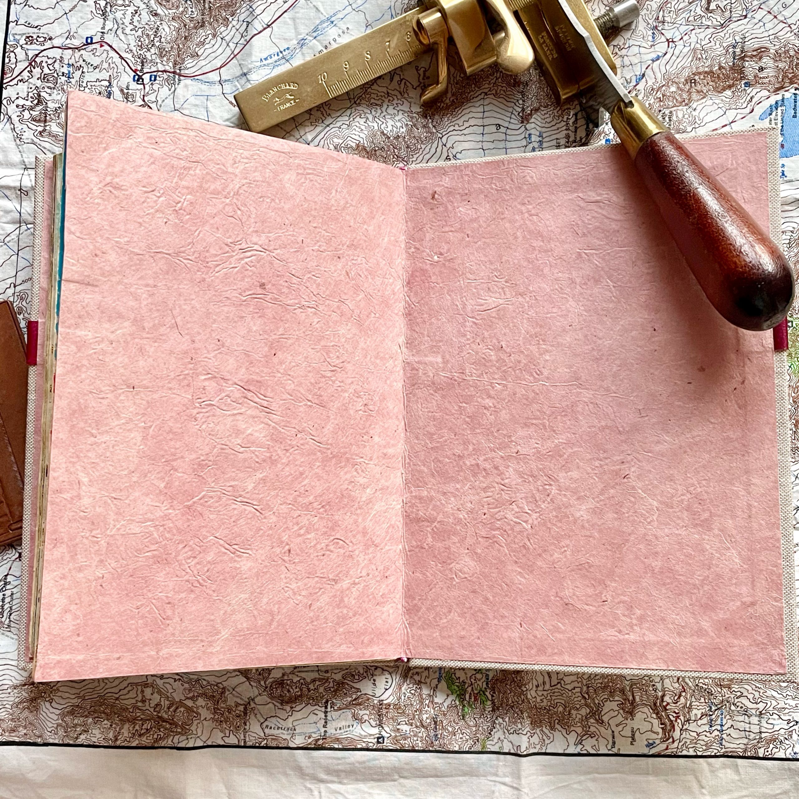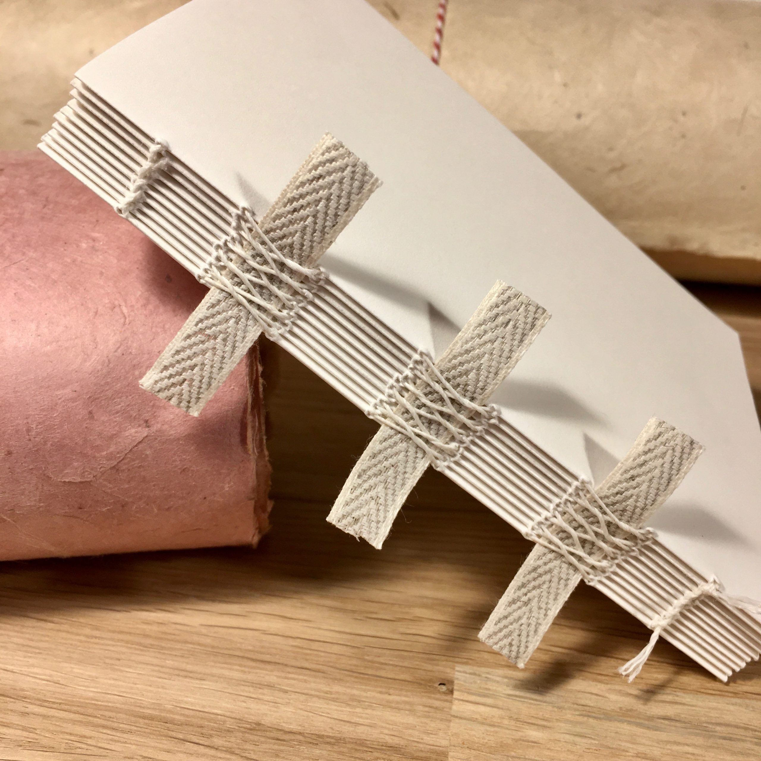 Notizbücher binde ich per Hand in Buchleinen oder pflanzlich gegerbtes Rindleder sowie Lammnappa oder Ziegenleder.
